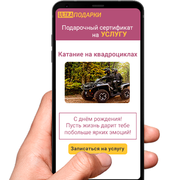 Например, любителям экстрима можно сделать сюрприз в виде катания на квадроциклах, такой подарок впечатление никого не оставит равнодушным, во-первых, это отличное времяпрепровождения, а во-вторых, неплохой повод выбраться на природу с друзьями или близкими людьми. Что в свою очередь очень полезно для здоровья, а также это позволит вам подарить необычный и уникальный подарок. Человеку, который любит расслабляющие процедуры, в пору подарить сертификат на “Спа-процедуру Бандажное обёртывание”, он точно оценит такой презент и получит массу удовольствий! Второй половинке будет приятно принять в подарок “Конная прогулка для двоих”, свидание вдвоём на конях окунёт в романтическую обстановку нежности, вы запомните это мгновение на долгое время!